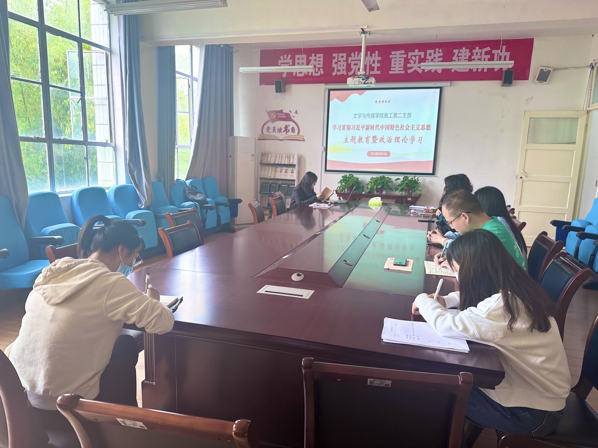 5月10日,教工第二党支部召开学习贯彻习近平新时代中国特色社会主义思想主题教育暨政治理论学习会。