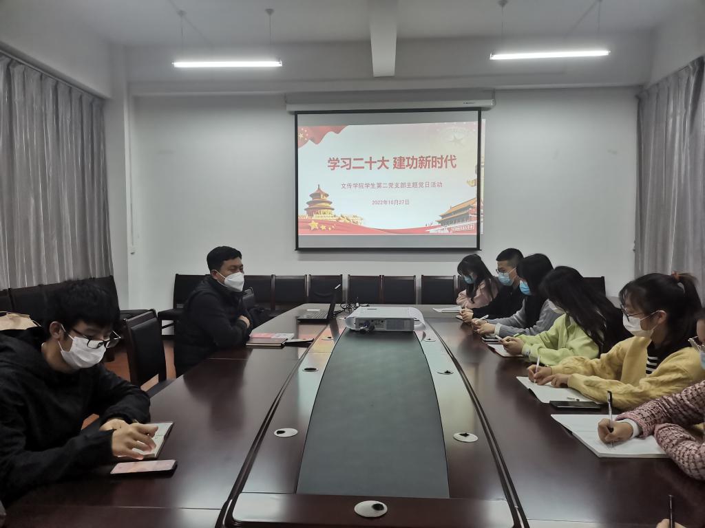 为深入学习贯彻党的二十大精神,引导全体党员以史为鉴、勇毅前行,10月27日,文传学院学生第二党支部组织全体党员同志开展以“学习二十大 建功新时代”为主题的党日活动。
