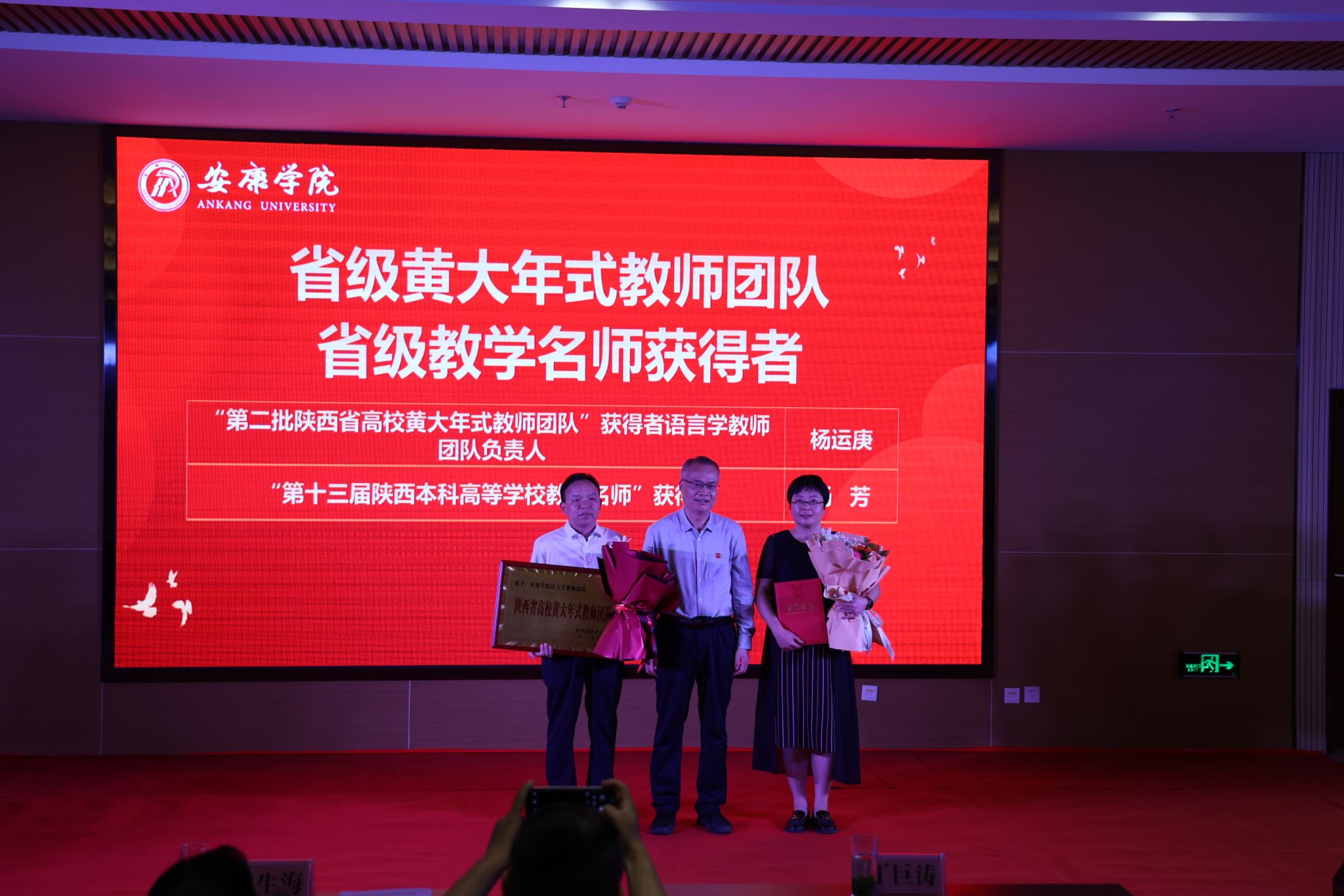 文传学院语言学教师团队被评为“第二批陕西省高校黄大年式教师团队”,文传学院分会获“陕西省教科文卫体系统模范职工小家”称号,邸玲获陕西省“课程思政教学标兵”称号,杨运庚负责的《古代汉语》课程被认定为第二批省级课程思政示范课程,谭诗民负责的《中国优秀传统家训》课程获批陕西特色线上课程,邸玲主编的教材《职业形象塑造实训教程》获陕西省本科教育类一等奖,崔瑜获第五届陕西高校青年教师教学竞赛三等奖,周海霞获安康市优秀教师、校级优秀教师荣誉称号,李婷获校级优秀教育工作者荣誉称号,曹刚获校级科研创新先进个人荣誉称号,孙鸿等11位教师获从教30年特别荣誉称号。