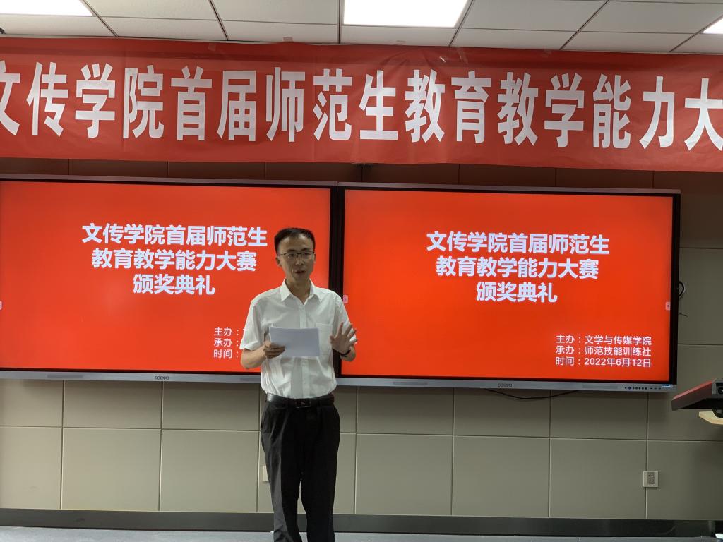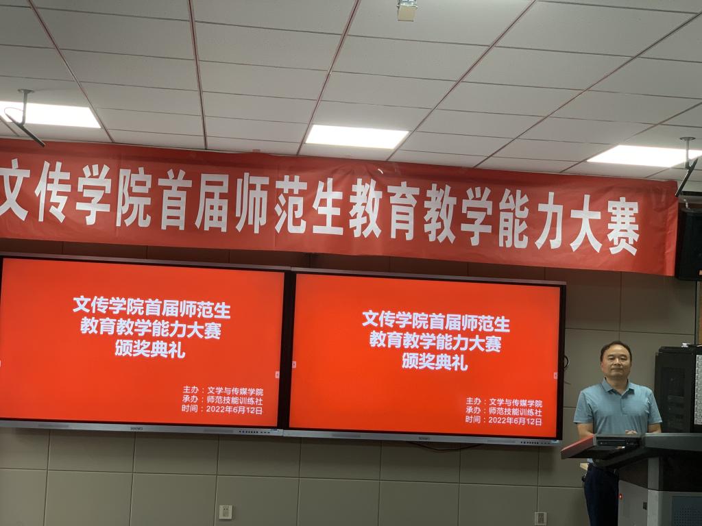 首届师范生教育教学能力大赛对接陕西省师范生教育教学技能大赛,包括粉笔字书写、即席演讲、说课、模拟授课四项竞赛内容。