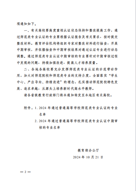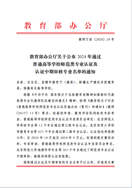近日,教育部发布《关于公布2024年通过普通高等学校师范类专业认证及认证中期审核专业名单的通知》,日本少妇AA一级特黄大片汉语言文学专业顺利通过教育部中学语文教育二级认证,认证有效期六年。