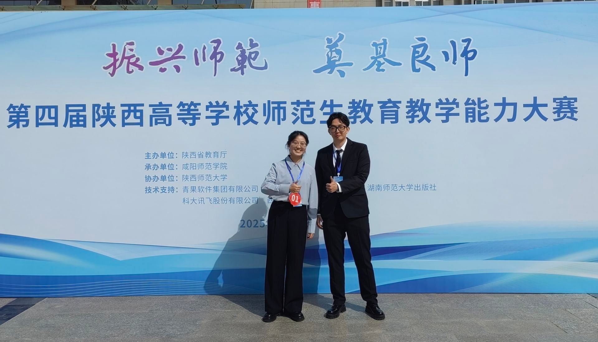 近日,陕西省教育厅办公室发布《关于公布第四届陕西高等学校师范生教育教学能力大赛结果的通知》(陕教师办〔2025〕13 号),我院汉语言文学专业 2022 级学生冯沛元、郑红阳,在学院、学校的层层选拔以及省赛复赛的激烈角逐中脱颖而出。在张格瑄、唐明珍两位老师的悉心指导下,他们凭借扎实深厚的专业素养、精湛出色的教学技能,成功闯入省赛决赛。决赛中,两位同学以出色的表现,双双荣获中学语文组二等奖的优异成绩。